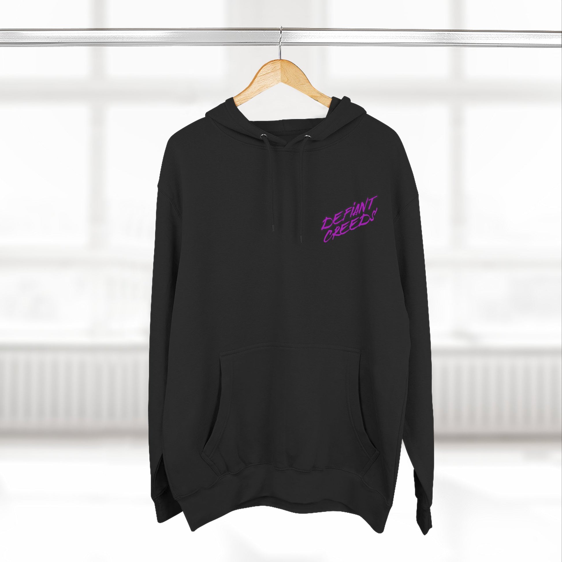 Ride into the chaos. The Midnight Mayhem Hoodie features a blazing blood-moon backdrop, swarms of bats, and a lone rider tearing through the night. Neon purple lettering gives it that retro 80s edge, while the fiery artwork explodes against deep black cotton. Built for rebels, riders, and night creatures who thrive after dark