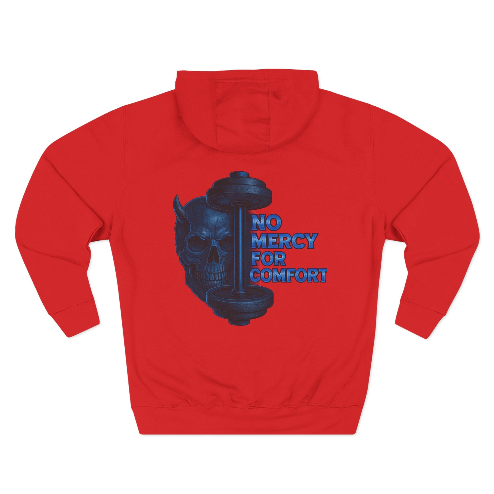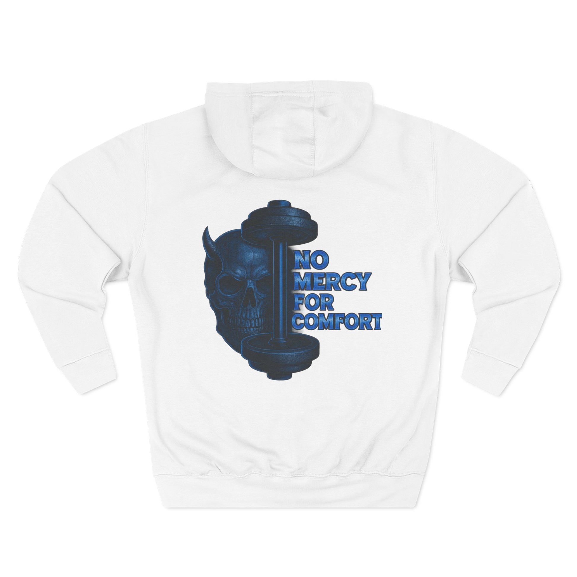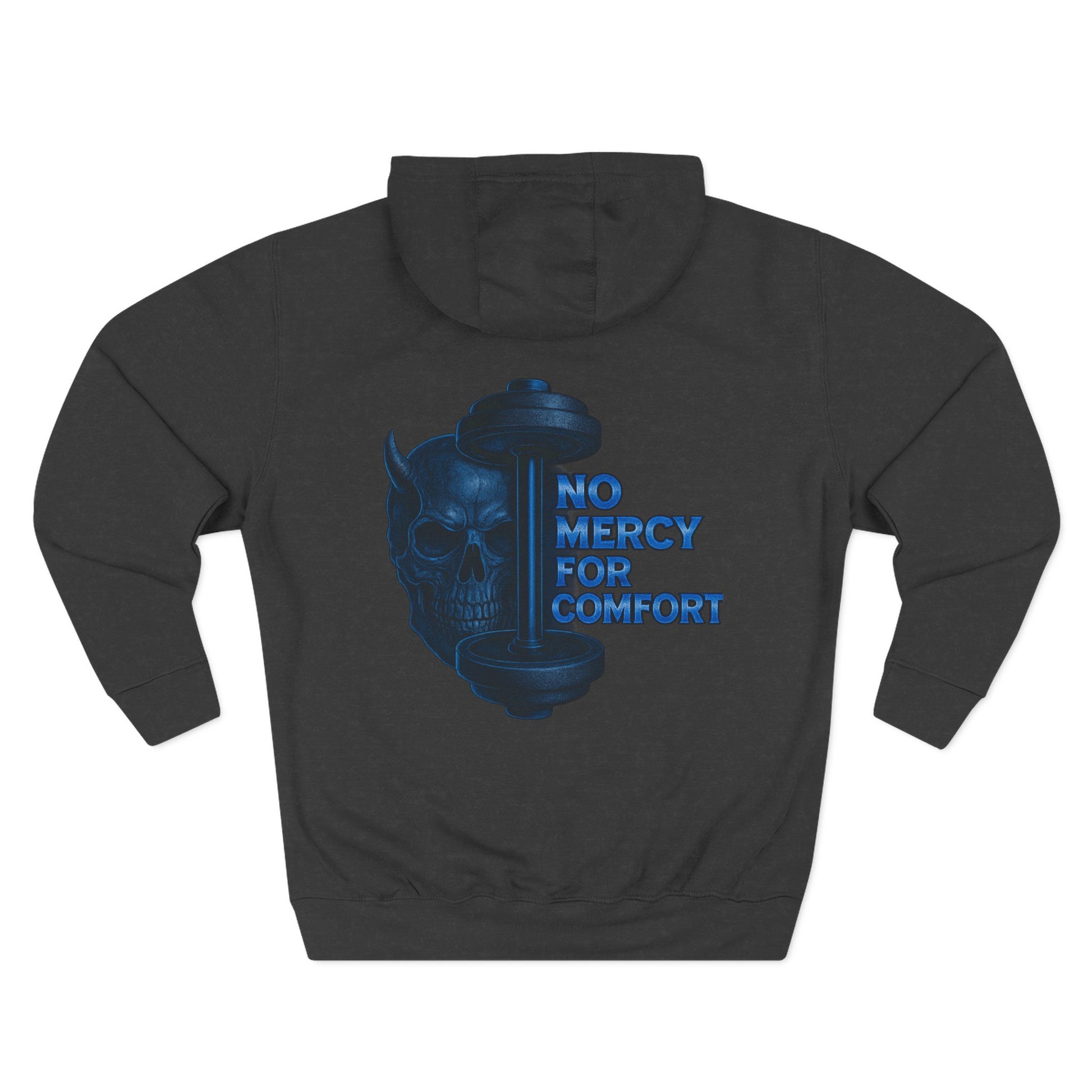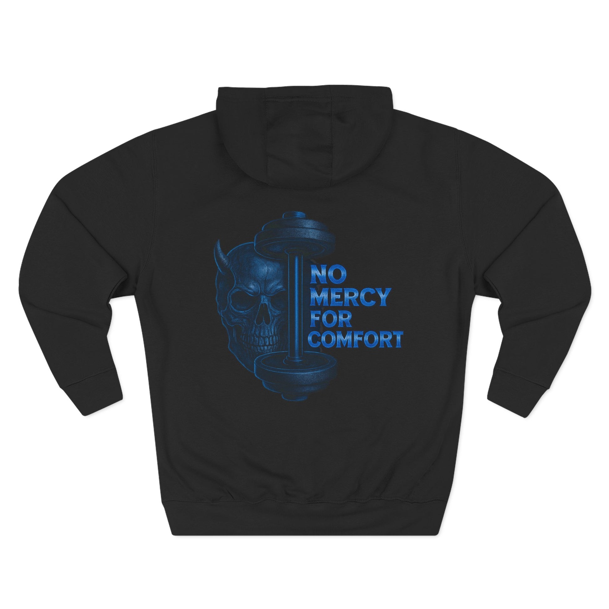 Unleash your inner beast with this hoodie that refuses to play it safe. Featuring the bold phrase “No Mercy for Comfort” beside a skull and dumbbell graphic, this piece embodies raw intensity and a relentless drive to push beyond limits. Perfect for gym sessions or casual wear, it’s built to inspire discipline and grit every time you throw it on.